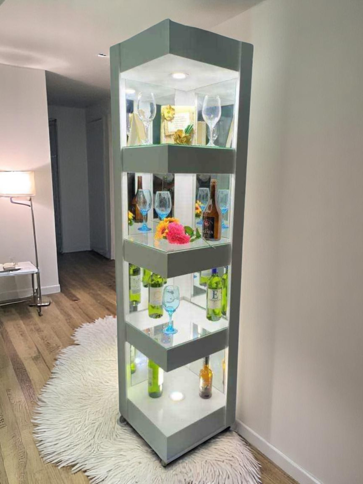 • Luces LED, vidrio y espejo